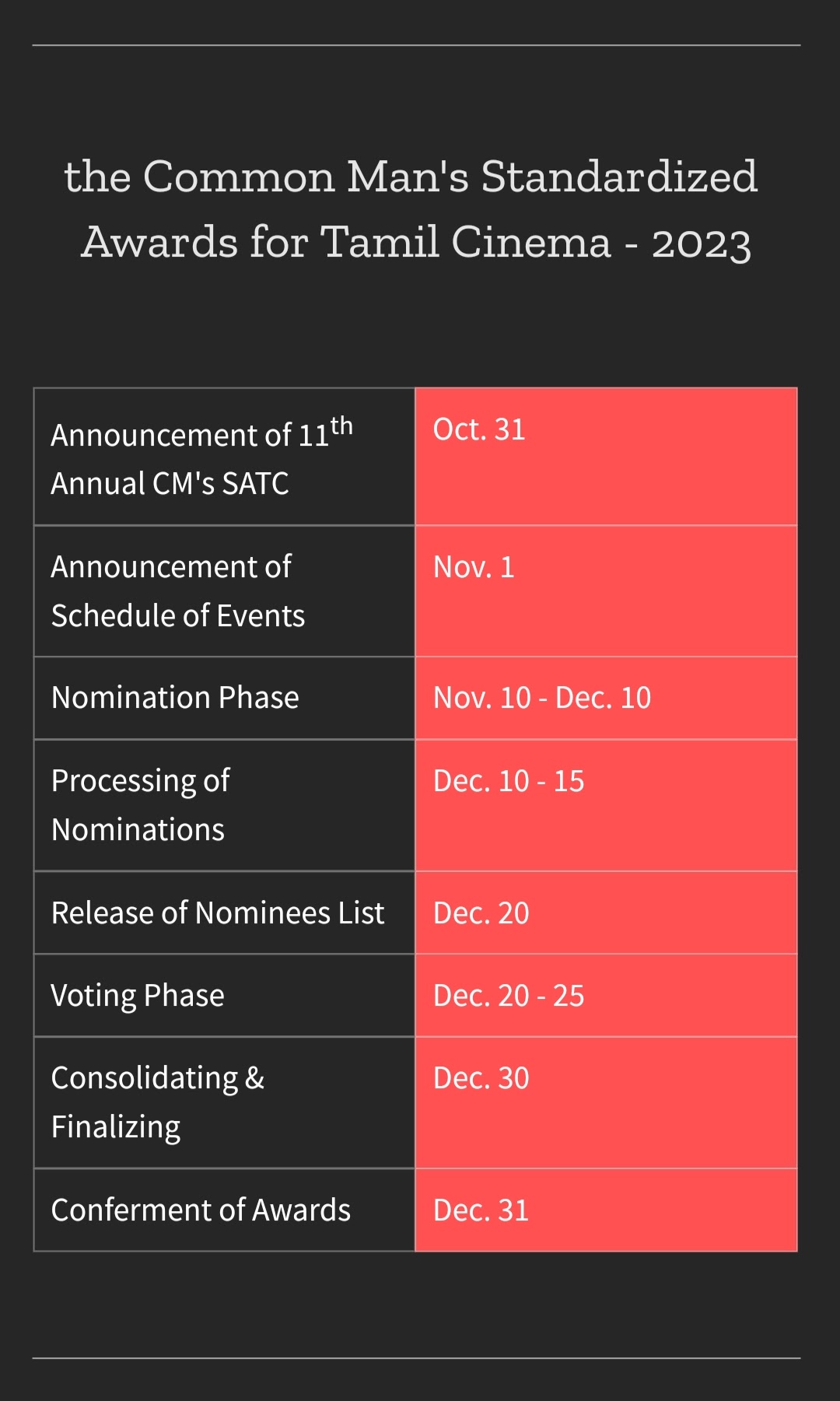 Therefore, the 10th Annual CM’s SATC = the Common Man’s Standardized Awards for Tamil Cinema – 2022